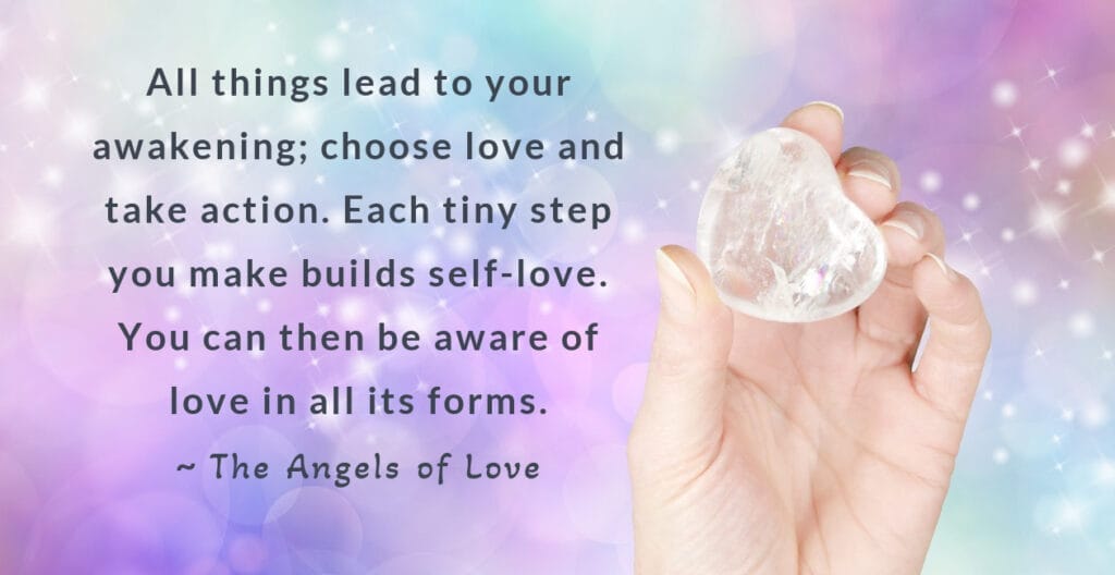 All things lead to your awakening; choose love and take action. Even a tiny step makes a big difference. Each choice you make fosters self-love, as you become more aware of love in all its forms.