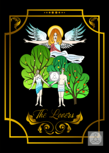 In one esoteric tarot card deck, the Lovers card shows a man and woman standing beneath the angel, Raphael, whose name means ‘God heals’ and represents both physical and emotional healing. The angel blesses the man and woman and reminds them of their union with the Divine.